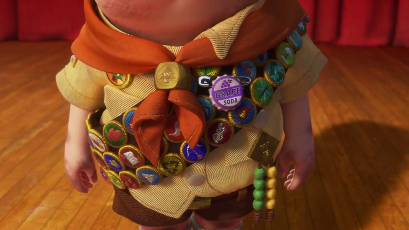 He has to continue with his adventure in life, an adventure that involves family, work and dreams. And what signifies and embodies this idea, what rewards and calls into the spotlight this achievement, is, for Carl, the Spirit of Adventure that he may pass on to Russell: The Ellie Button.